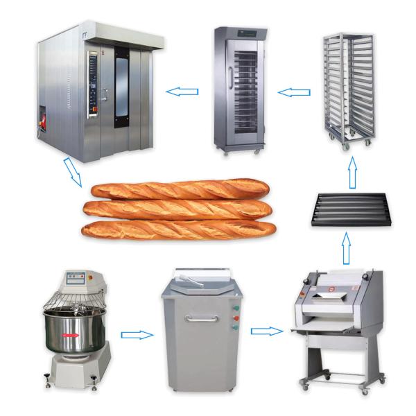 The complete full bakery equipment to make the baguette bread, french bread, stick bread and long bread and so on.